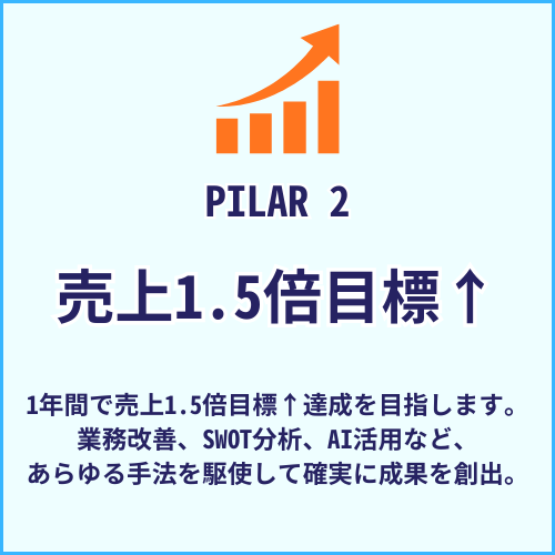 - 明確な成果指標:売上1.5倍↑という具体的な目標設定