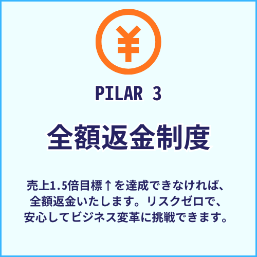 - リスクゼロの挑戦:成果が出なければ1円残らず全額返金