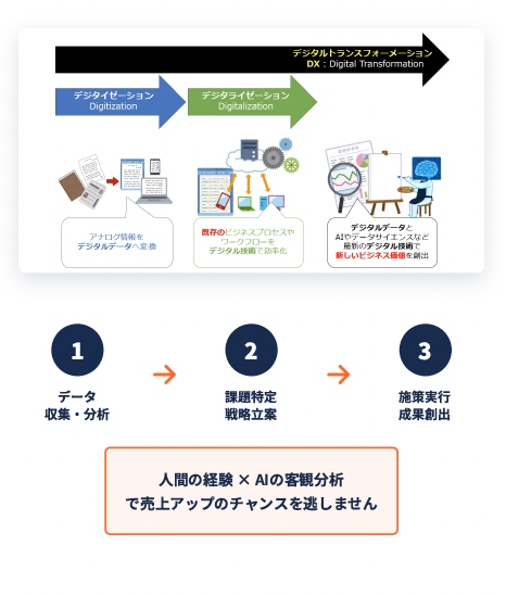 - 市場環境の急激な変化とDX対応の遅れが課題